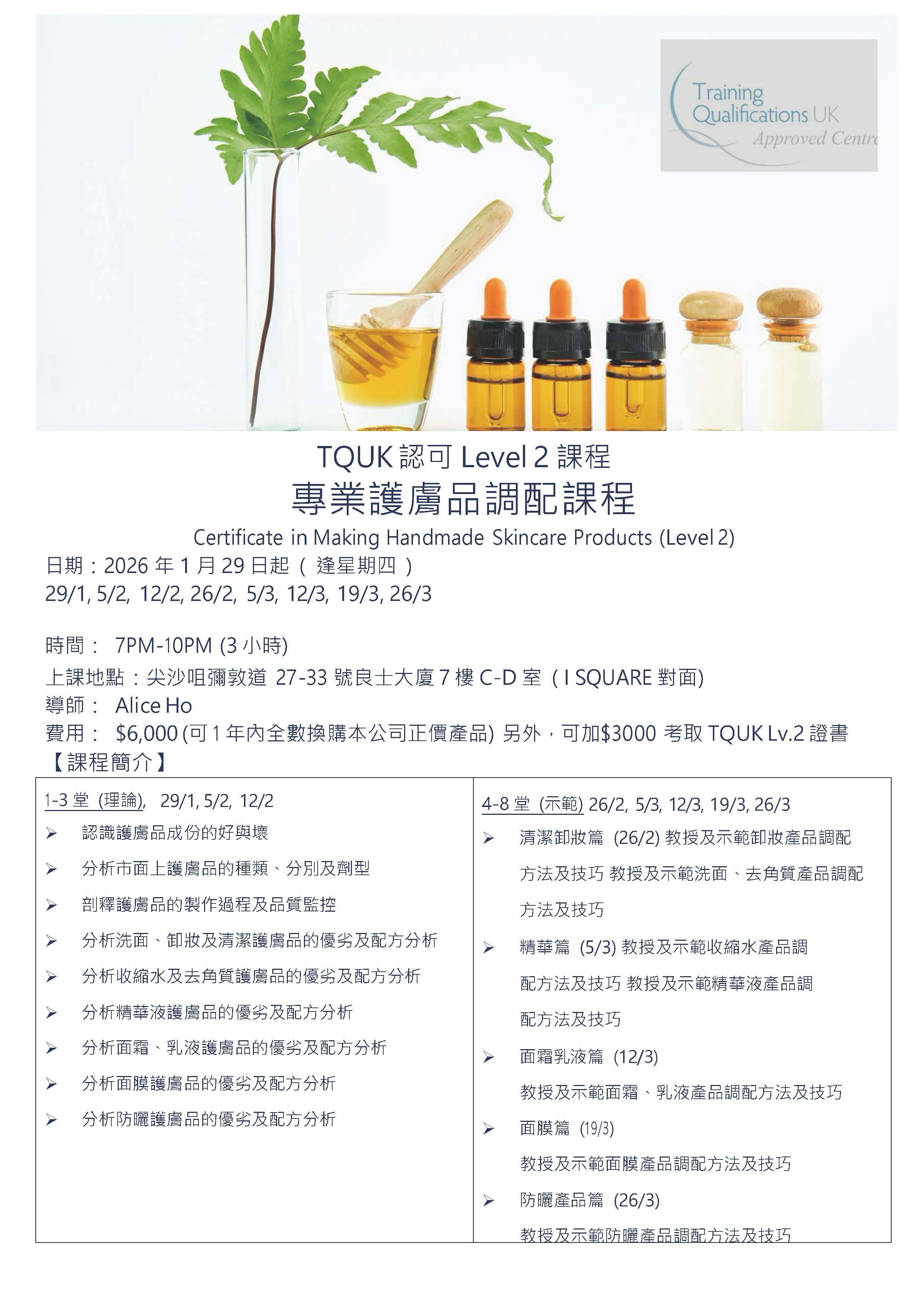 專業護膚品調配課程(送$6000,可全數換購本店原價貨品)