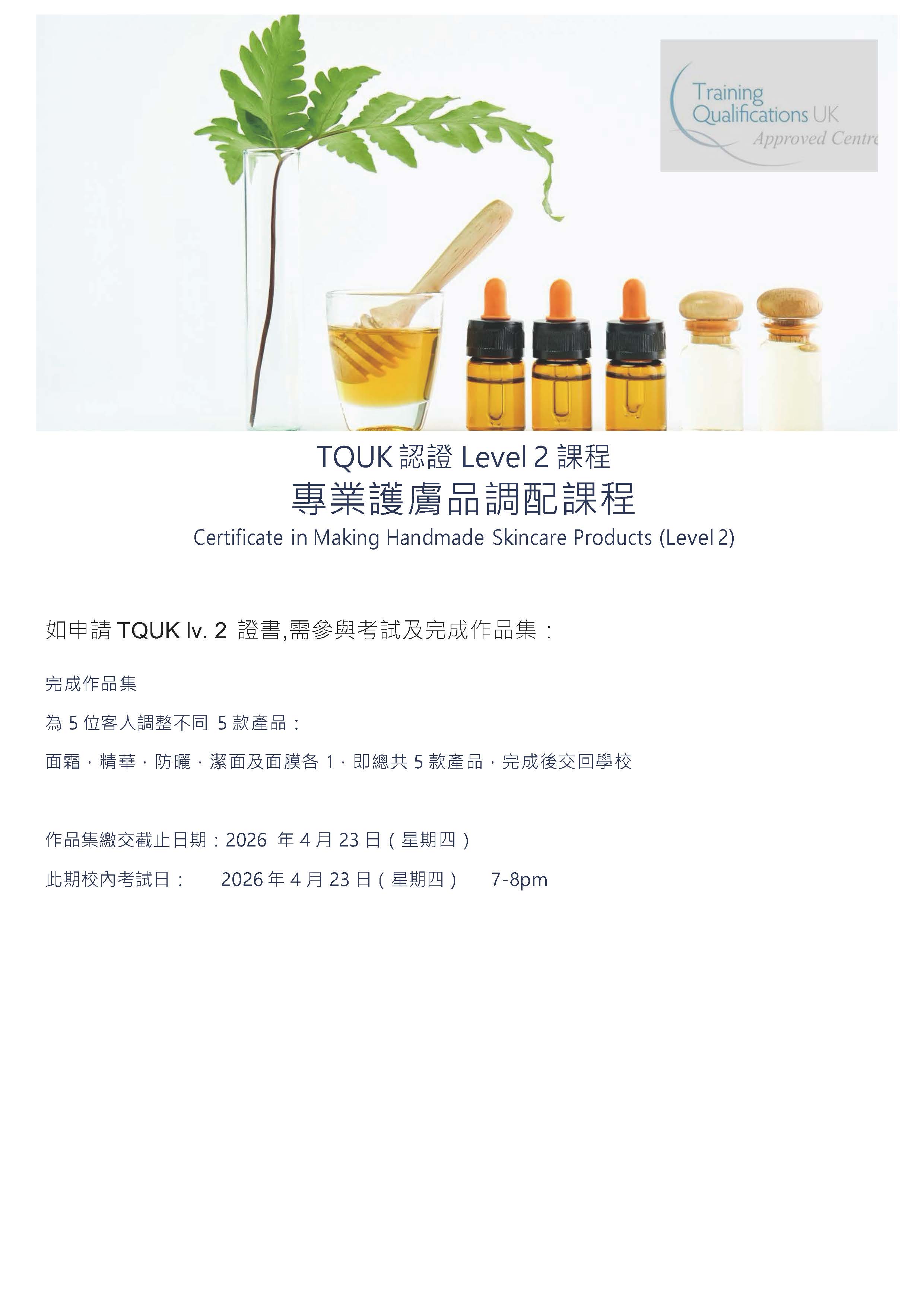 *出席率達8成,可於完成課程後,獲發由本校發出之証書一張,另外可加$3000 考取TQUK Lv.2 證書